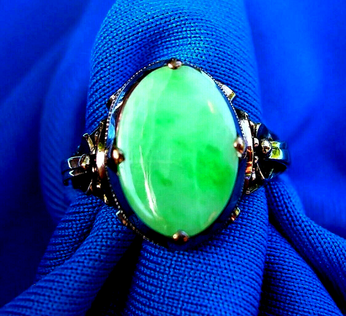 Natural 1.90 carat green Jade Antique Victorian Engagement Ring 14k Solid Gold Vintage Design Setting size 5.75